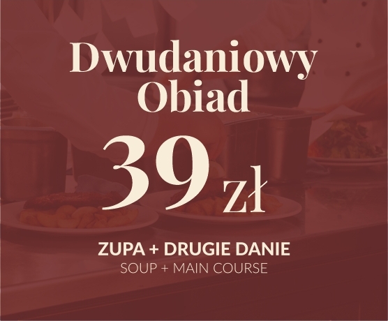 Zestaw obiadowy, w którego skład wchodzi zupa oraz drugie danie możecie zamówić w okazyjnej cenie - tylko 39 zł